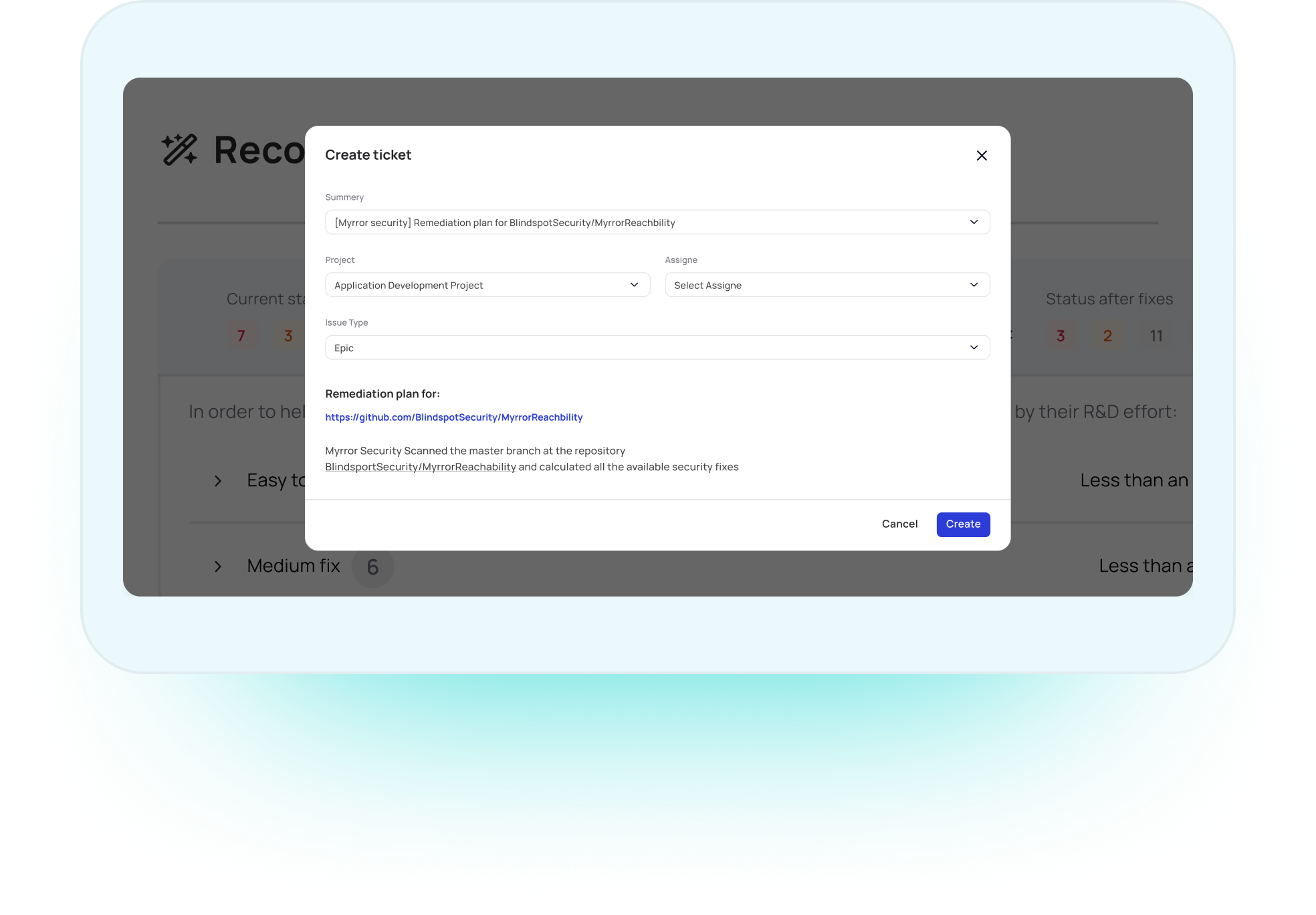 Myrror’s Contextual Remediation Engine provides concrete remediation steps that can be easily handed off to your development team. By predicting the eventual impact of each fix, the remediation plans ensure you’re not chasing newly-introduced vulnerabilities after every change.