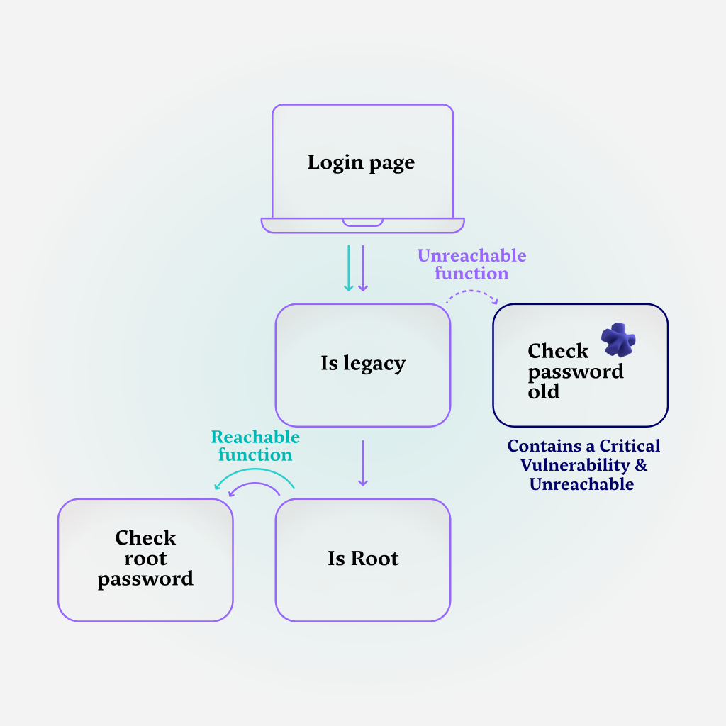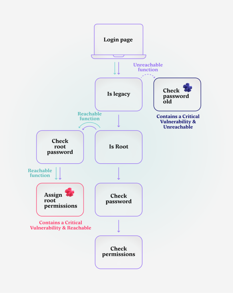 If the user is indeed a root user, that means that a check must happen for the user’s root password – which means it’s a reachable function. In this particular case, that function is not vulnerable, but of course, it is reachable because a user could be a root user.
