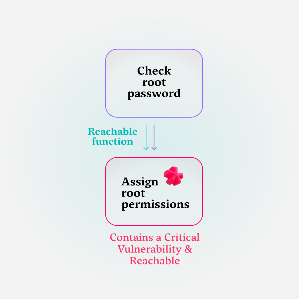And this is where things get really interesting: if the check for the root password passes, a logical thing for the application to do would be to assign root permissions for the user. This time around, the “assign root permission” function is both reachable and vulnerable.
